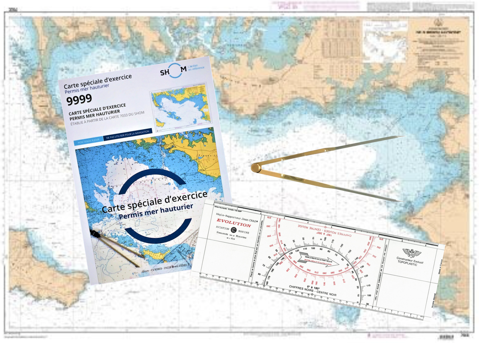 Ne comprends pas le kit hauturier : carte 9999-règle CRAS-compas pointe sèche-calculatrice. Nous pouvons vous le fournir-tarif nous consulter